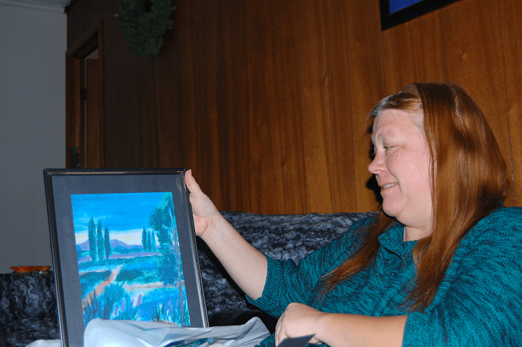 Amanda had tried out a new painting style, and framed some for mom…mom was a bit skeptical over them at first…