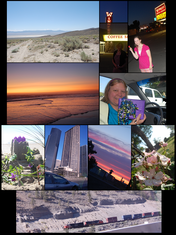 We went to Nevada, spent a day in the middle of nowhere in 120 degree weather, got a sun tan in a day.  I got kicked out of a casino, my sister won $20.  We spent some time on the Oregon Coast and saw some AWESOME sunsets.We returned from our road trip after mixing our days up and accidentally extending our trip by another two days.  We spent the 4th on the Ferry.