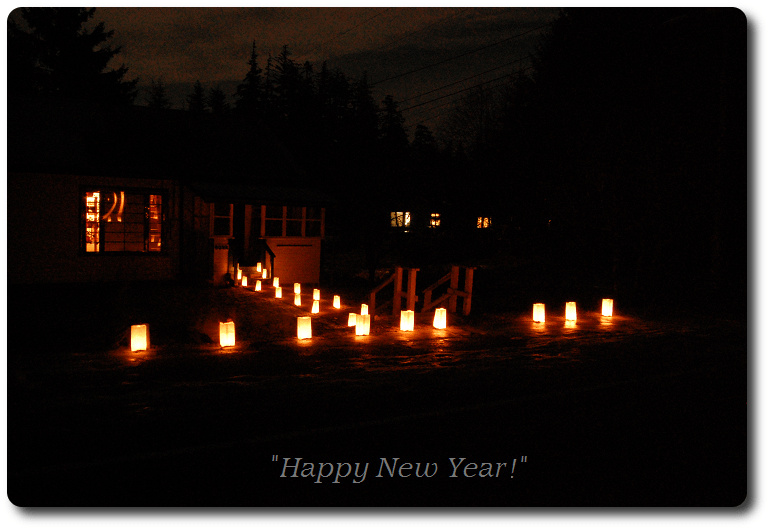 We spent at home, watching lame movies, set out our luminaries…and as the New Year came into full view, we stood out on our back porch and banged our pans as loud as we could while yelling in the: