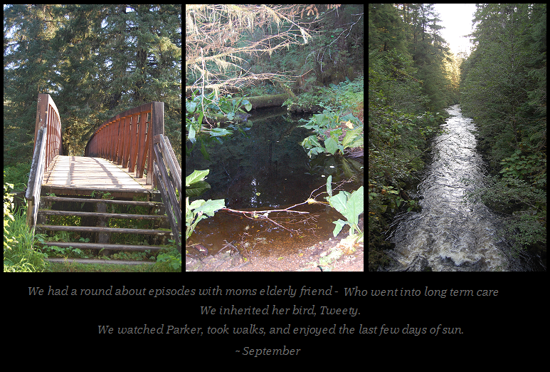 Not much happened in August.  The sun started to go away, and we began preparing for “Fall.”  We went fishing a few times, and watched our pastors dog.