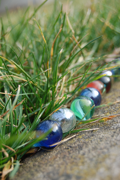 I love the first few marble shots, and the sun shining through the blue marbles… beautiful!