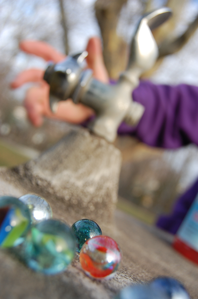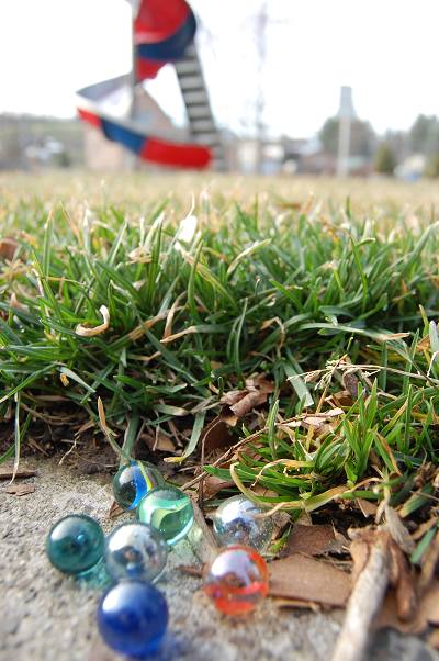 But the only picture I got, were of the empty slide, a few strands of hair, and the wind. Because those marbles can FLY. And fly they did. We spent the next 20 minutes “Looking for our lost marbles” and laughing at how funny it sounded.