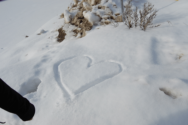 …and of course, on Valentines day, we had to pull over and draw a heart in the snow…
