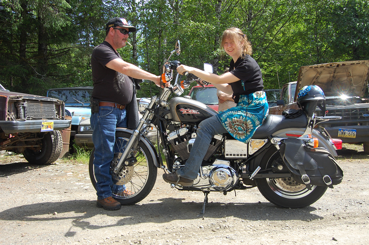 Slim is our shy dog. Even though you couldnt tell from this picture. She was all ok with the situation – the bike, the person (shes extremely shy around people) until he put his helmet on, and started the bike. Then it was a different story!