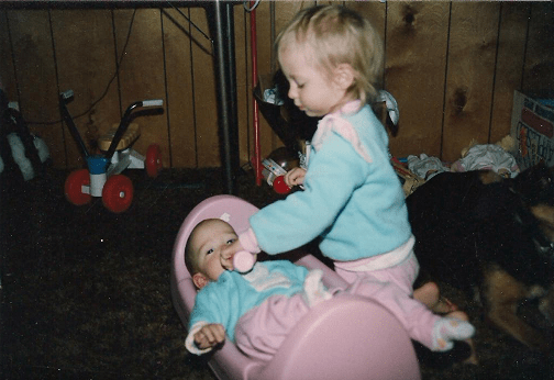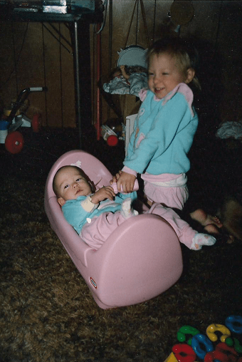 Incase you didn’t catch it – that’s me. In the doll cradle, while my sister attempts to “Feed” me a doll bottle.