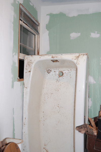 And then we had this three day weekend, and the bathtub founds its way back home. Which now has new plywood under it for support.