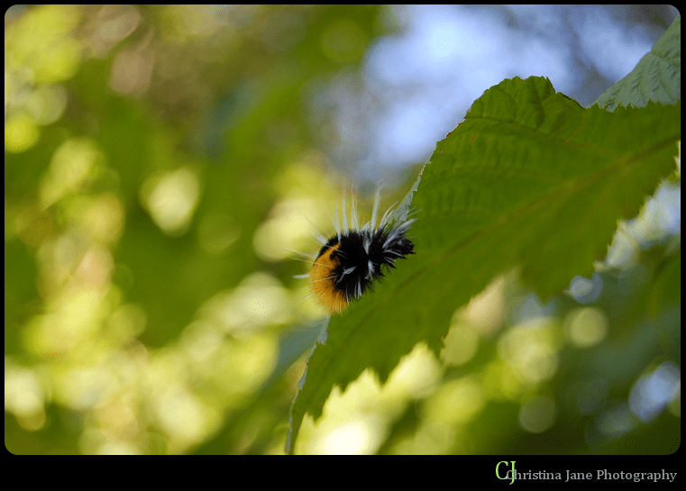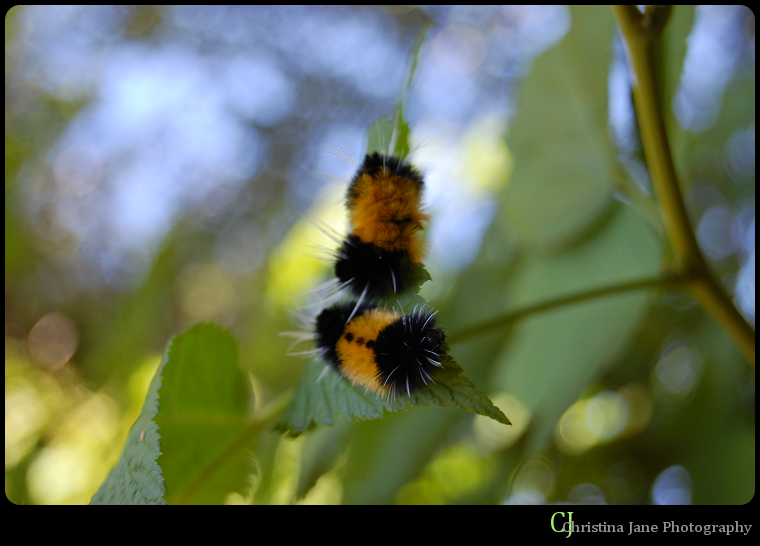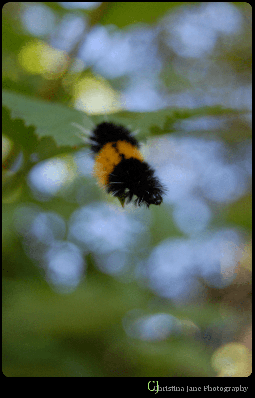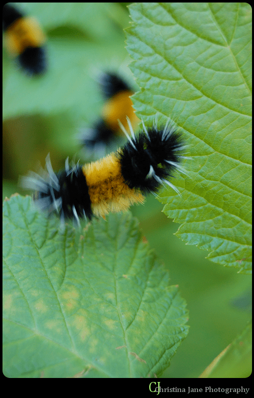 But then, while walking back to the shop after walking a friend home, my sister and I spotted a fuzzy caterpillar in the middle of the road, and instinctively scooped it up.  Then we saw another.  And another.  And by the time we got back to the shop, we had three of the cute fuzzies – as we call them.