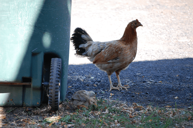 Neighbors chicken and chicks: