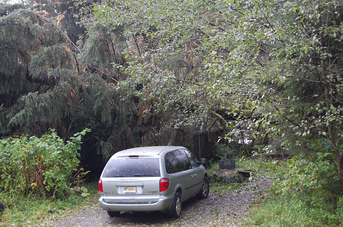 We lost a few trees in the storm…my dad took it upon himself to cut the most dangerous ones down, like the one hanging off a cliff…