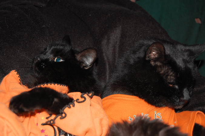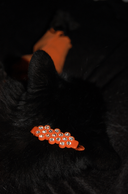 I like these pics they are so cute!!!!!! 😀 Tom has a very unimpressed look on as he humors you as you take h is picture, and Odo has a hair clip in her fur.