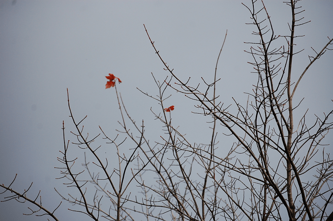 Those lone orange leaves are stunning contrast to the sky. Love those.