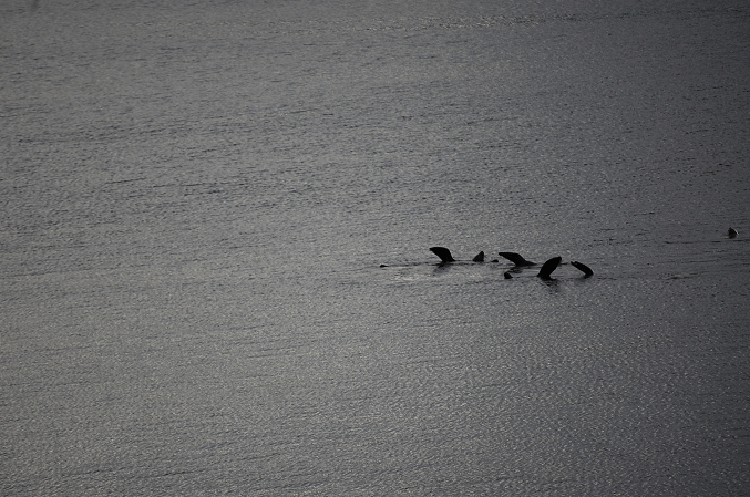Feeding hour (seal tails – there were whales too but the seals were swimming around with their heads down and tails up – eating)