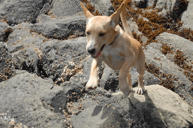 She still thinks she can fly – silly dog. She misjudged a rocks distance and ended up going for her first swim. Needless to say shes not sure what to think of the water anymore! She thinks she can fly, but doesnt know about swimming!