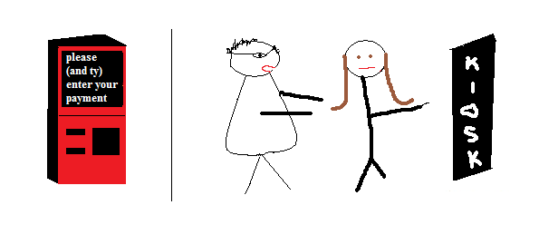 But even well behaved machines dont work right ALL the time. The owner asked for my payment. I pointed at Kiosk.