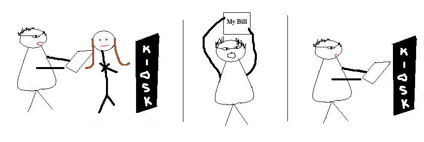 Once upon a time I went to pay some bills. It was a routine stop. A stack of bills ready to be paid. The lady behind the desk instructed me to go use the KISOK machine. A new contraption that was taking over the world, and her job.