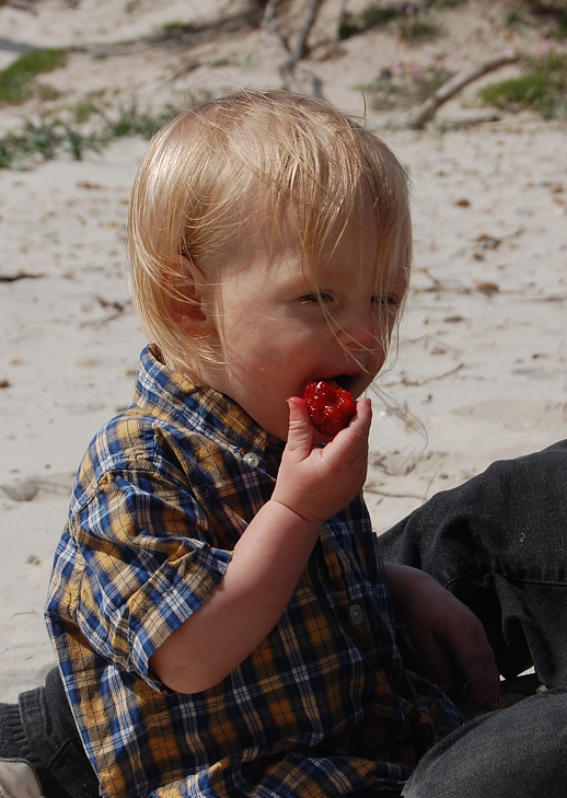 Strawberries on the beach, and sand between your toes with sun on your back.