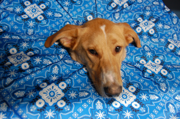 3. Wednesday – Puppy love apparently, did not like her fancy new pink cast with purple hearts. Because Wednesday morning I woke up to find she had chewed through it! She got a new cast and a prescription to wear this blue cone.