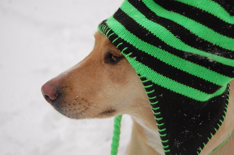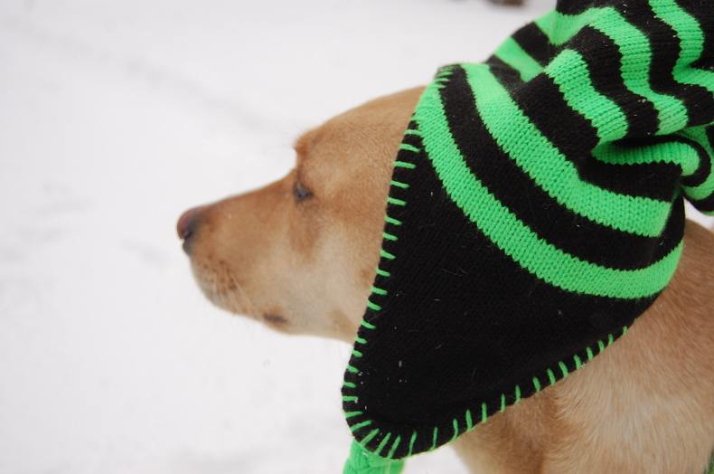 When she was done (or as done as she could be – shes NEVER done playing in the snow) I made her model my new hat.