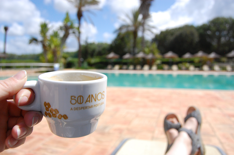 Our morning started with coffee by the pool…