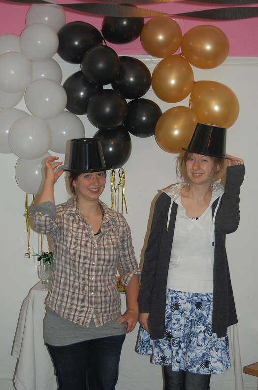 Amanda and I modeling our top hats. I had originally ordered some top hats to be used as serving dishes (like the popcorn was in). The first time I ordered – I ended up with mini top hats, which made Amanda and I crack up – since she didn’t know what I was planning I think she might have been a bit skeptical!