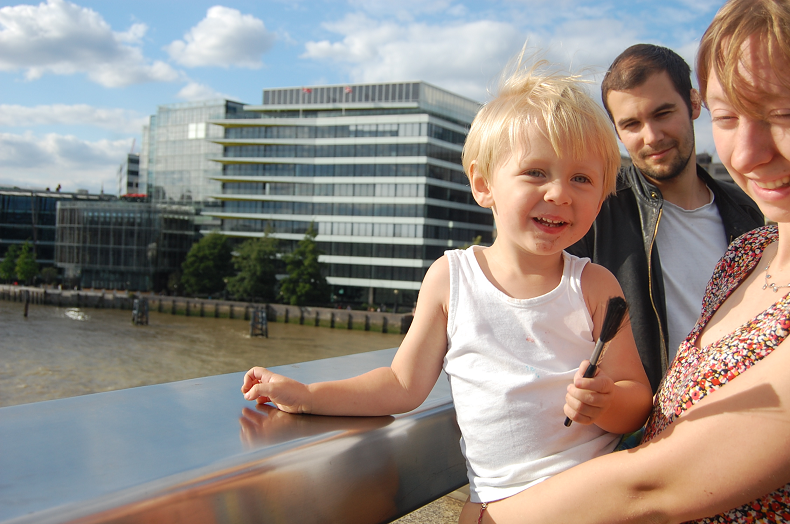 Then we hit up London bridge – because SOMEONE had it stuck in his mind that he had to paint it today. His look says it all.