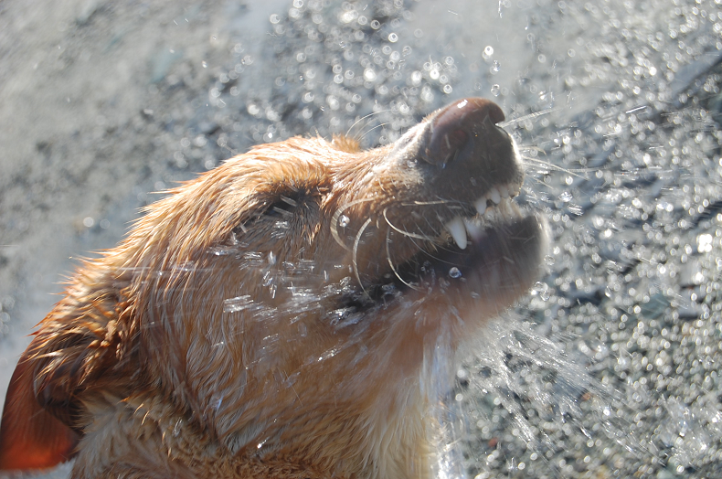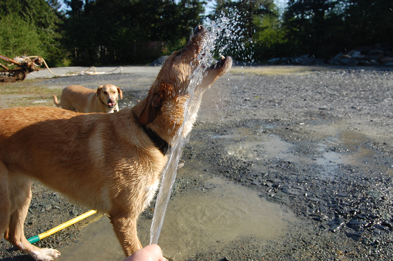 I love Yoshi in the background -she really doesn’t understand why Siren likes to stick her head in the water. Just for the record I wasn’t spraying her, I was holding the hose -she was sticking her head in the water.