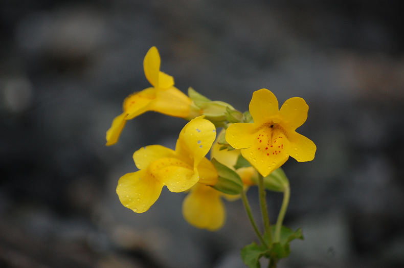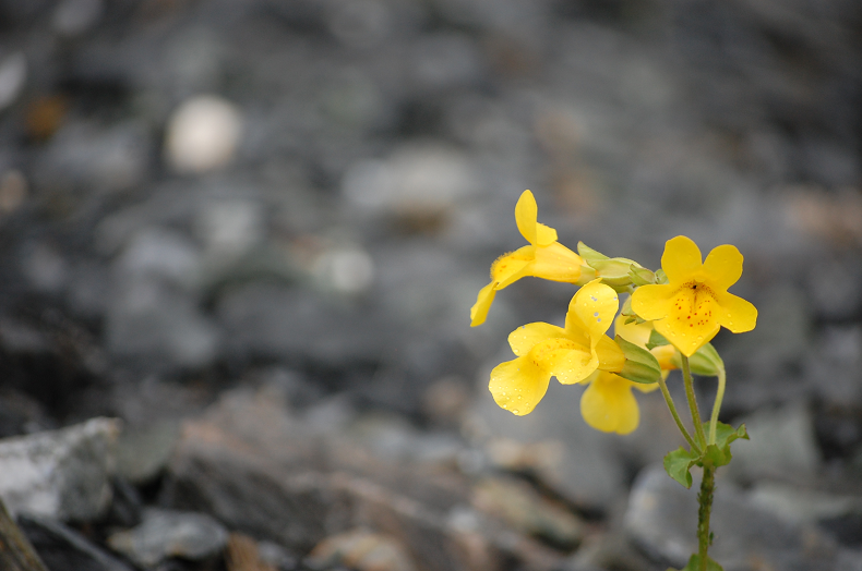 See that little yellow dot? They are flowers. In the middle of a gravel lot. Nothing else. Just four small yellow flowers -a type that I have never seen before.