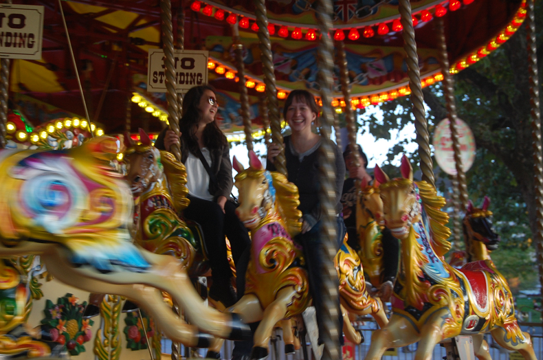 …and then we saw it. A carousel. I have a slightly weird obsession with them, and the undeniable need to ride every. single. one. Thankfully, Morgan was happy to oblige and we rode off on our big horses.