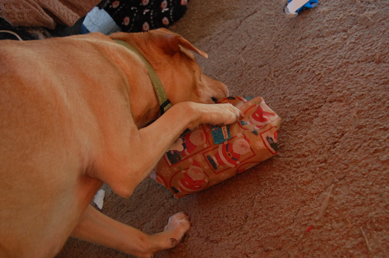 Yoshi unwrapped a stuffed groundhog toy that sounded like a pig -she loves her some pigs.