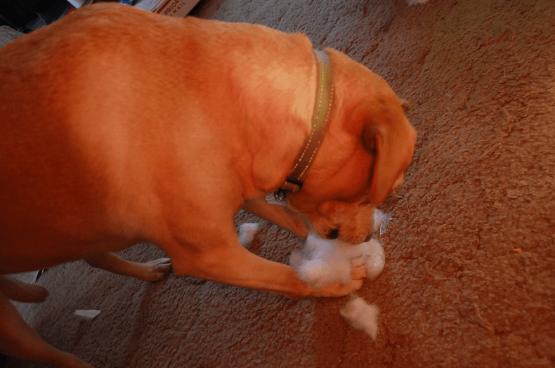 It took her about five minutes to have the thing unwrapped and un-stuffed…