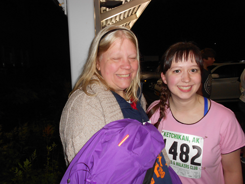 We waited until 11pm before loading up in the car, driving to town, pay money to get our bibs and free shirts, took a few pictures and the gun went off. We ran. We beat our previous time by 3 minutes. We had fun.