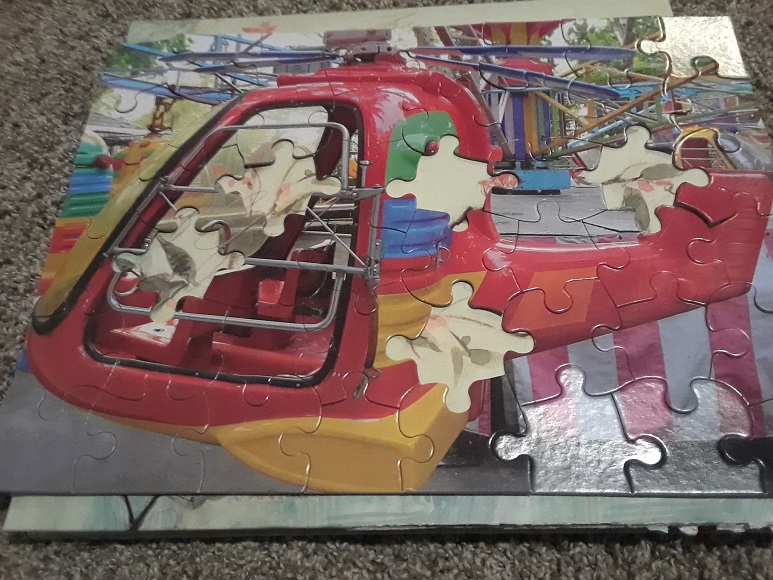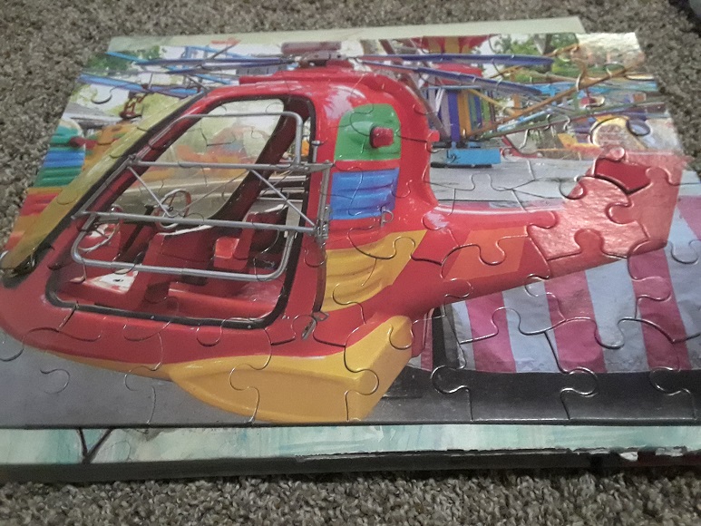 …and then we went back to the big puzzle pieces. We took our 6 pieces that on their own didn’t make much sense and didn’t make much of a picture. I made them choose an “item” to go with it: having an old bike, who our friends are, where we go to church. I tried to help them mentally connect the two pieces and realize that on their own -ascribing an event to their actual puzzle piece. So instead of just a piece we had “Friends” and “Getting sick.”