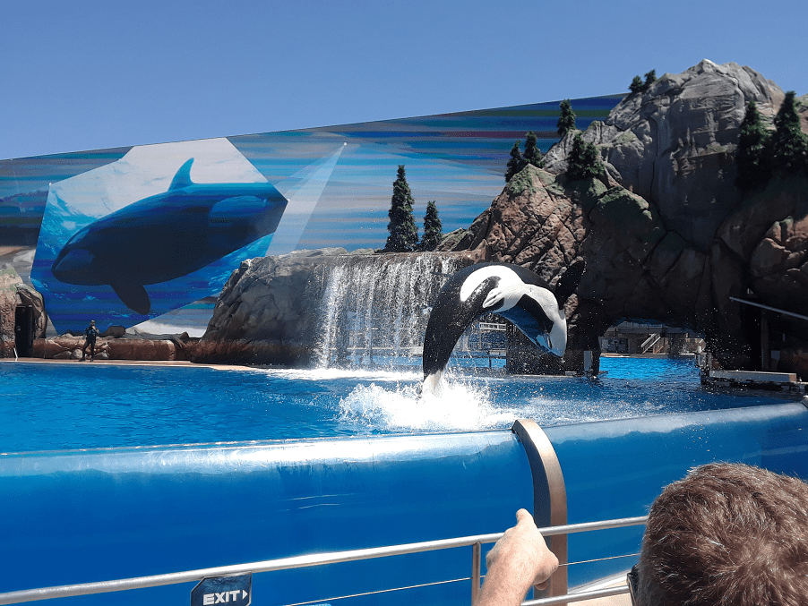 On our way to the Orcas we stopped to see the dolphins and happened to arrive right as they were training them. Since it wasn’t that busy we even got a front row place! It was pretty neat seeing them that close!