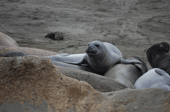 I did a quick google search (how did people do road trips before cell phones and data?) and discovered the place we were looking for was the Piedras Blancas Elephant Seal Rookery. It was free, had free parking and was only 3 miles out of the way. Read: Right up our alley!