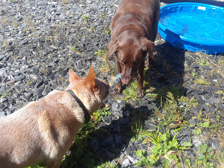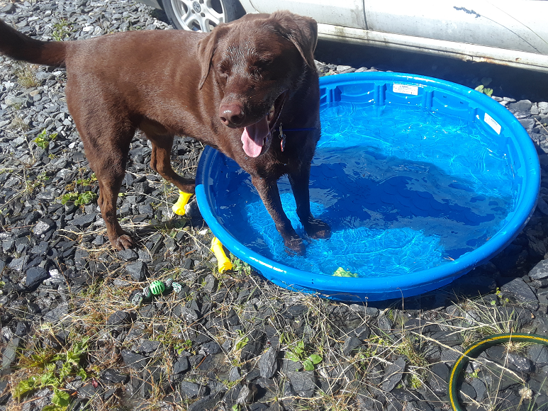 I’ve been doing my best to keep the gaggle of dogs I have cool while they are here…we have the swimming pool which is a big hit: