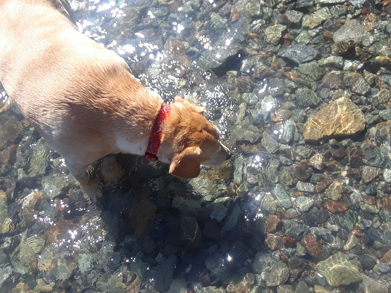 Yoshi doesn’t like going out that far, but she loves getting the credit for fetching, so she always runs out to meet whoever brings back the stick/ball/leaf/toy and steals it from them. Silly girl!