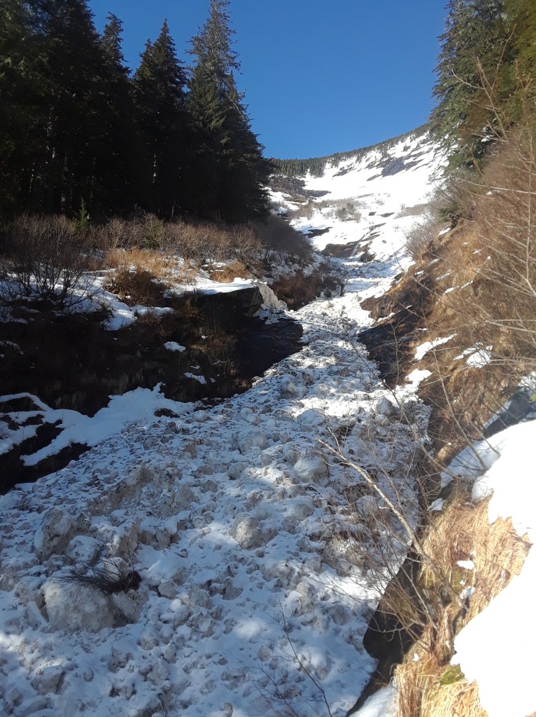 The brief bit of research I did before heading out said that you cross the “avalanche ledge” before arriving at the end. It wasn’t marked…but I’m pretty certain this was the avalanche ledge.