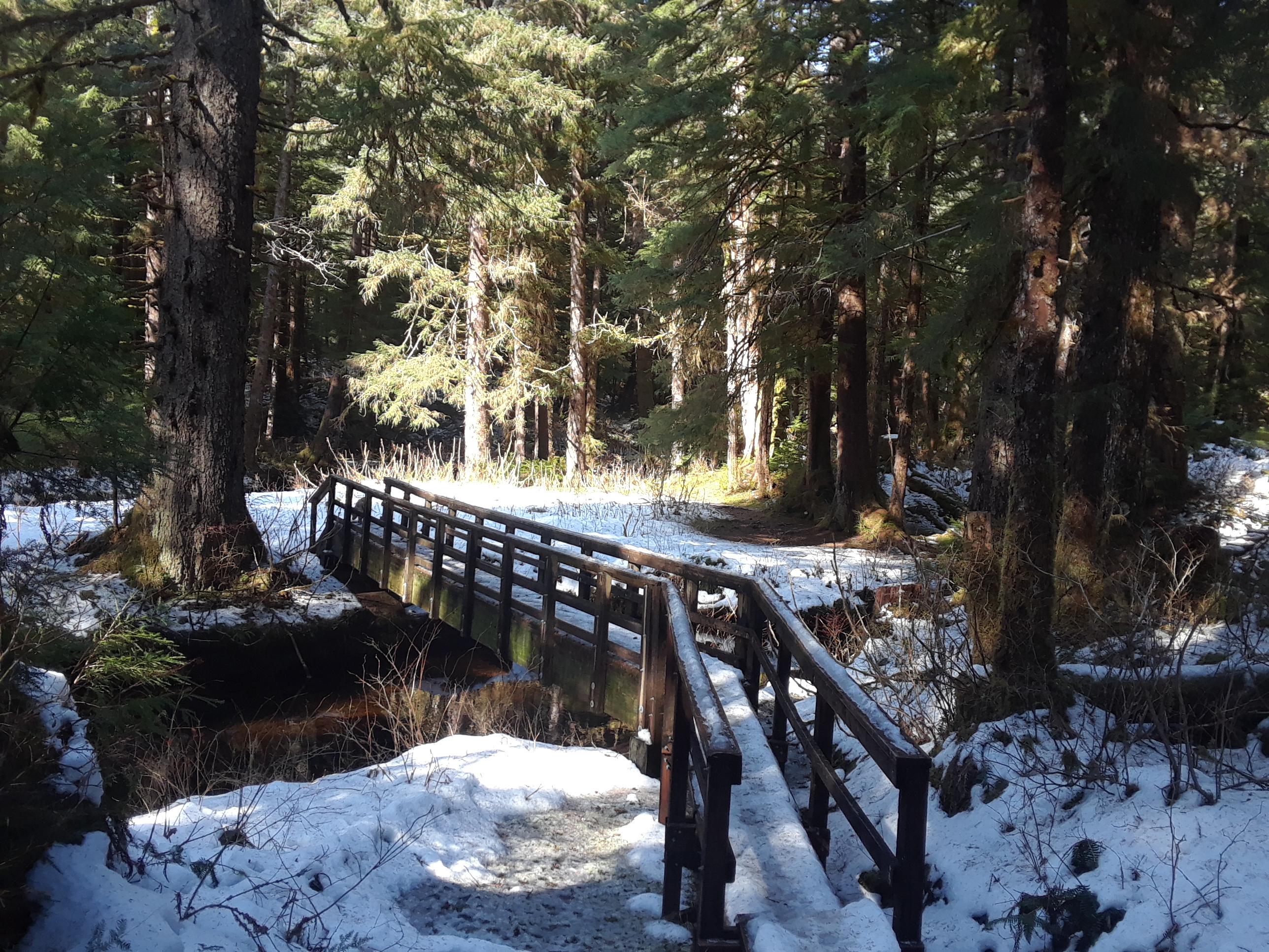 This trail had the most snow out of all the trails I’ve been on this week. Since I’m not entirely sure about where I am going my rule is “if I can’t determine where the trail is, or I am getting unsure of where I am, we are done.” There were a few points I wondered if it was time to turn back -but then there was some boardwalk indicating we were on the right trail. Or, at least, a trail!