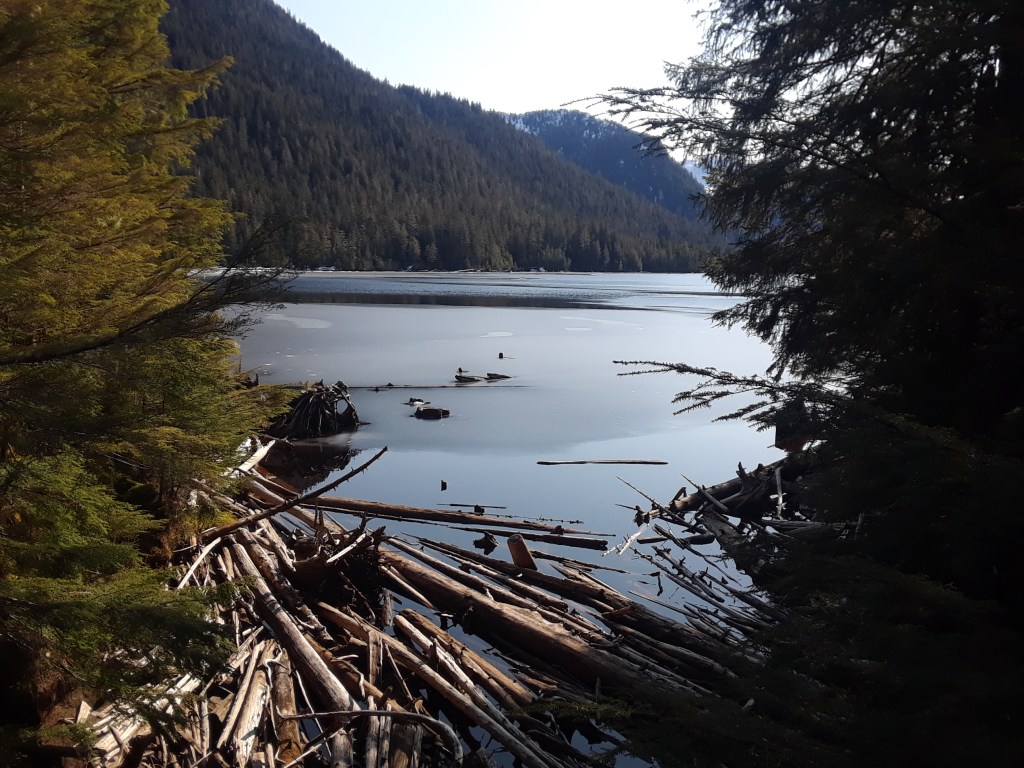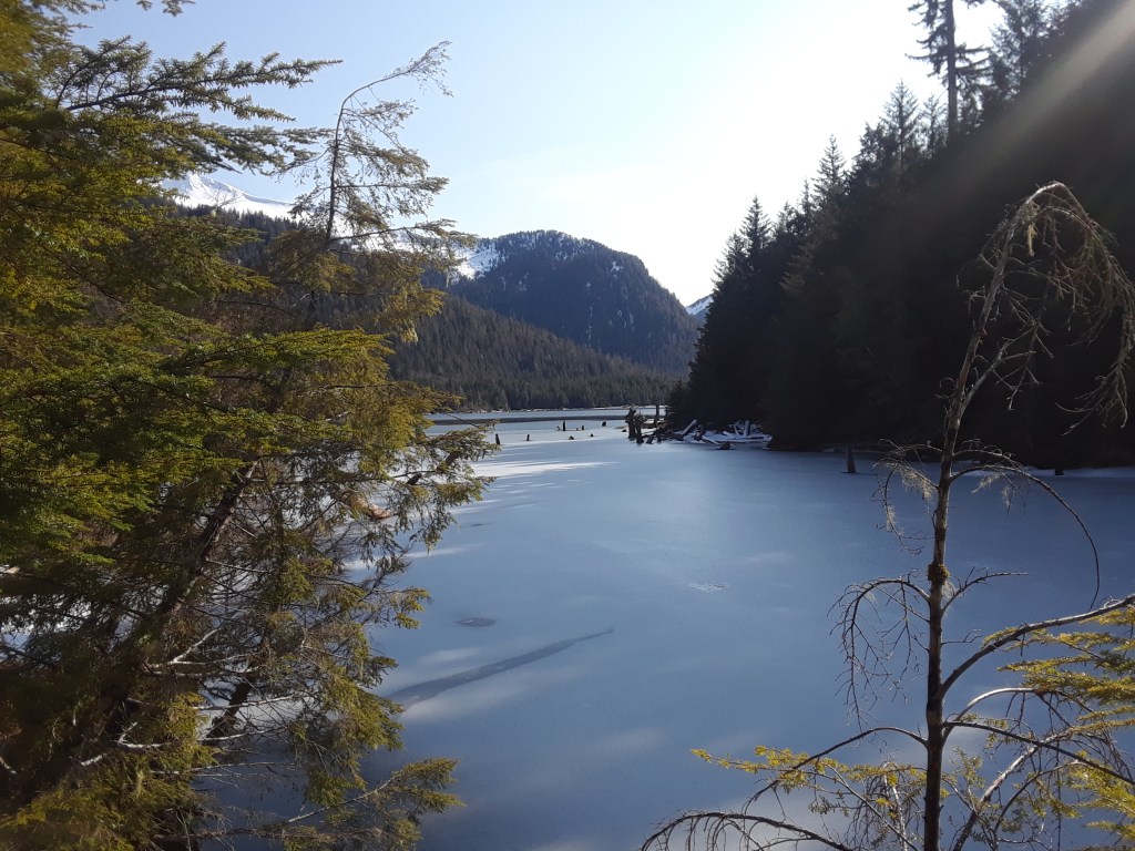 “Soon, you will come across a strange bridge that crosses over the creek just before Talbot Lake, but the trail does not continue on the other side of the bridge. Most likely this bridge is used for fisherman and hunters who want to gain this side of the creek and lakes. Skipping the bridge, the trail continues just a little further and ends at a tent platform at the southwestern end of Talbot Lake, another serene and quiet getaway.” -Alaska.org