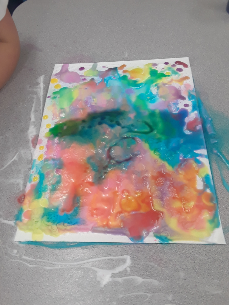 We’ve done moon-dough (sorry parents), Puffy paint with shaving cream and glue, spray paint (again, sorry parents for sending your children home covered in blue paint that was SUPPOSED to be washable. I swear it was!). I’ve done Oobleck and slime. All the hands on messy activities -sign me up!