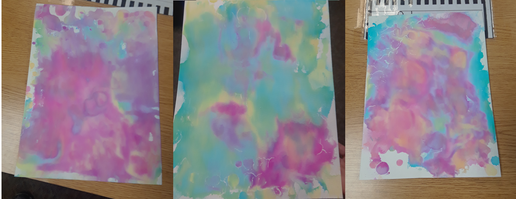 Once it dries, you scrape the baking soda off and are left with a cool watercolor tie-dye painting of sorts. I know, I’m so very technical with my wording.