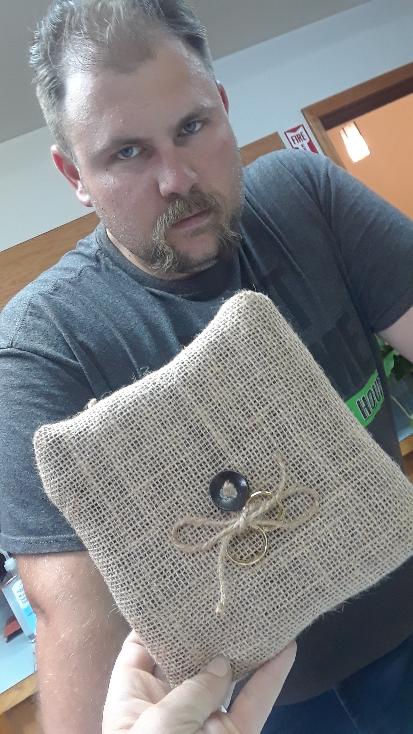 We didn’t have a ring pillow, so Andrew put his mad sewing skills to work and made this custom pillow.