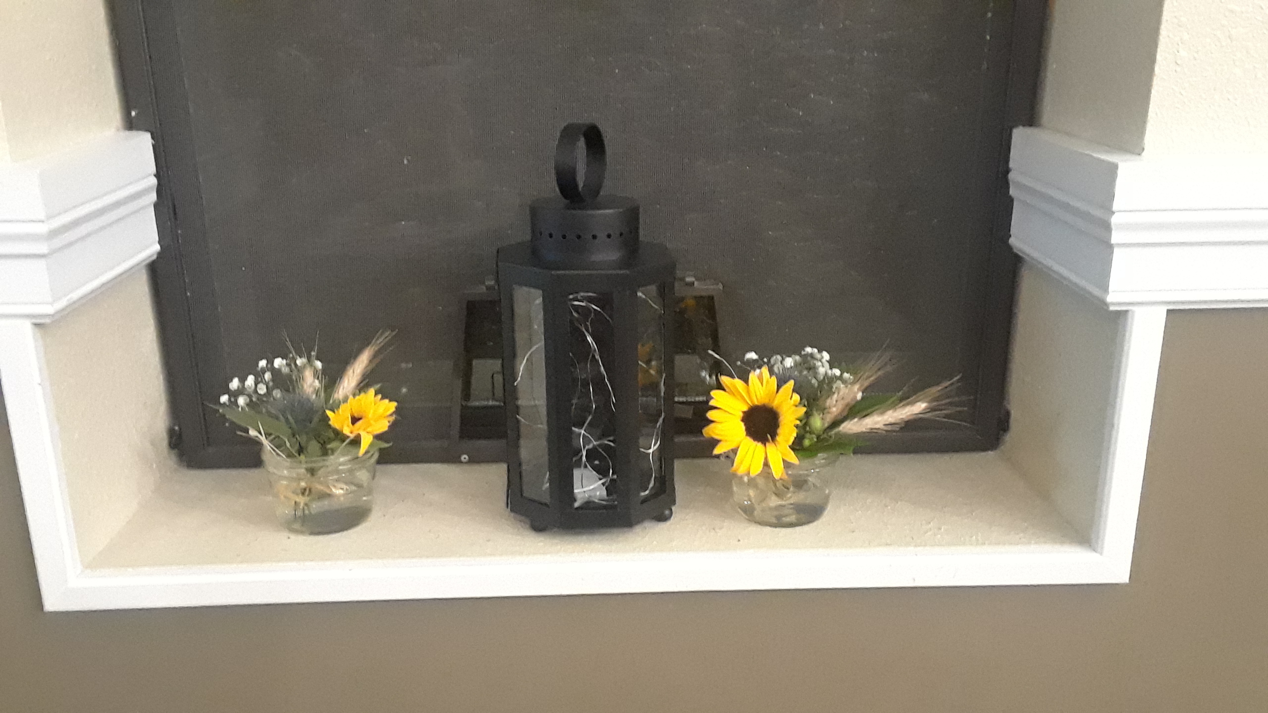 We wanted to incorporate his job into the wedding as much as possible, so he brought his fire helmet from home to be part of the decor and photos
