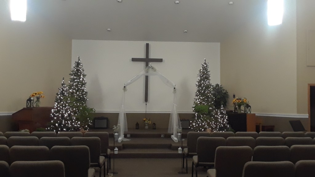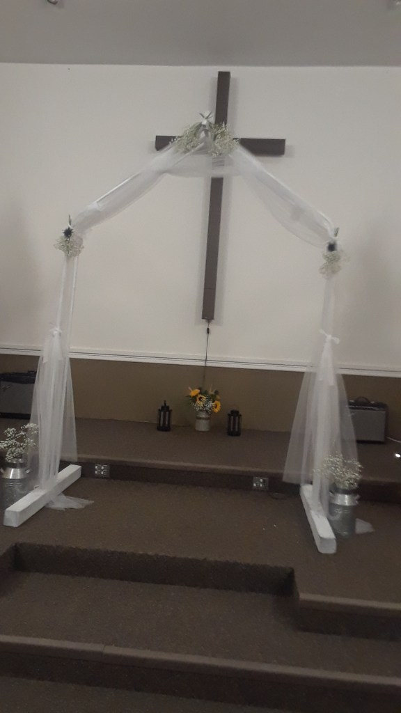 Not only did she put together all the decorations as well as the flowers and arrangements, she decided last minute that we needed an arbor -and got to work arranging for dad to build one. We built, painted and assembled said arbor the day before the wedding.